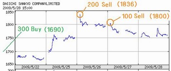 とりあえず、上記で利益を得ようとする場合は権利確定日一週間前までの高値で権利日4,5日前に売り注文 といったところだろうか。